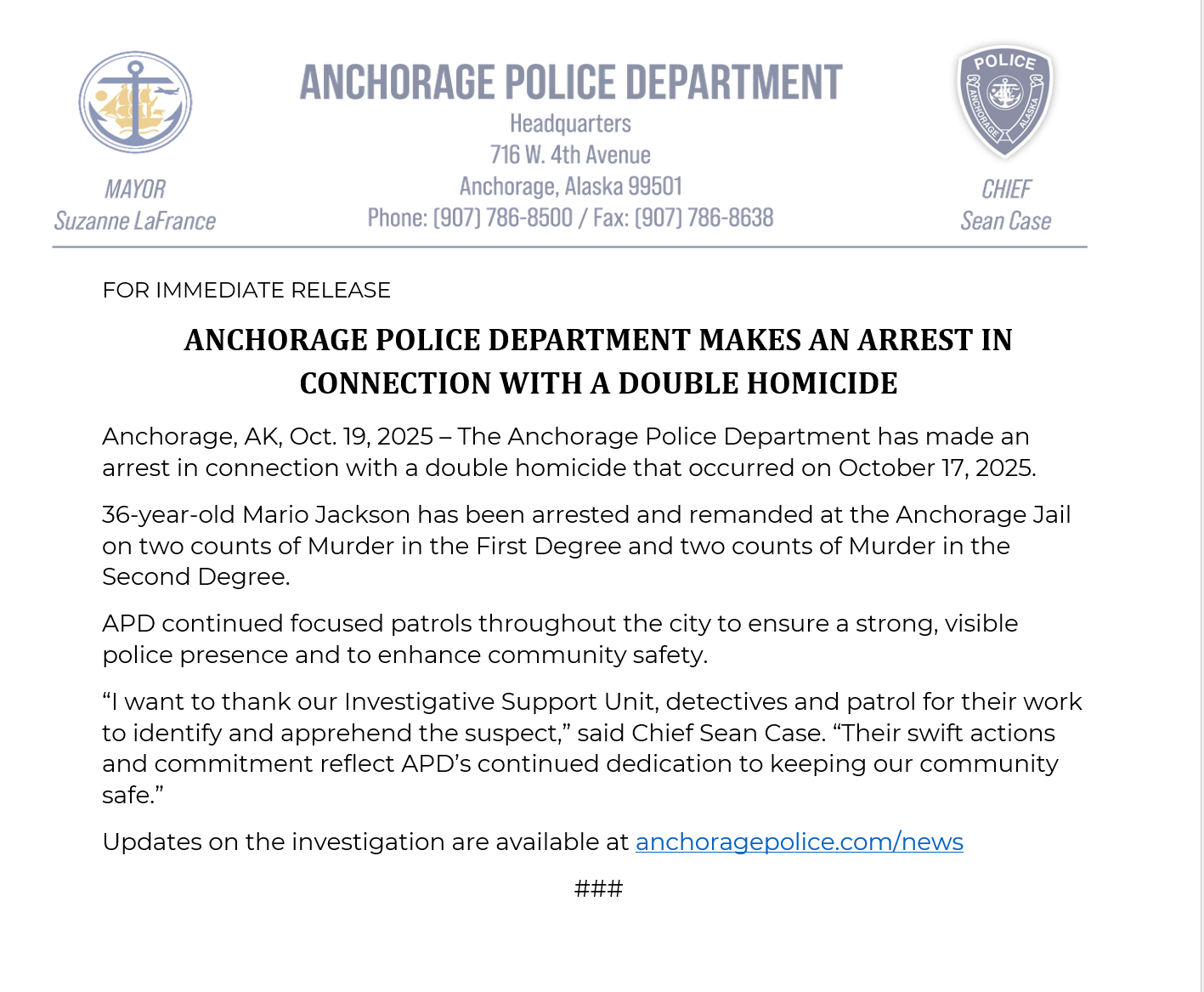 PRESS RELEASE: ARREST MADE IN CONNECTION WITH DOUBLE HOMICIDE Teresa HagensiekerOctober 19, 2025 Facebook0 Twitter Tumblr